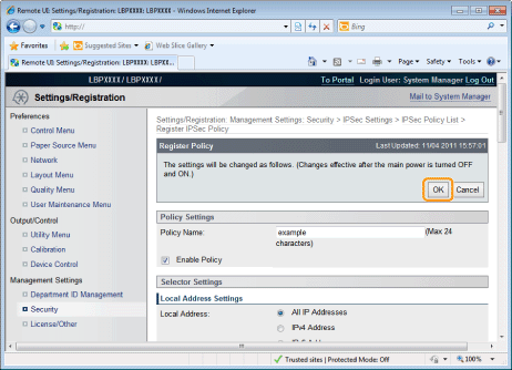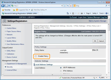 ![]() | If the check box is cleared, the security policy cannot be used. |