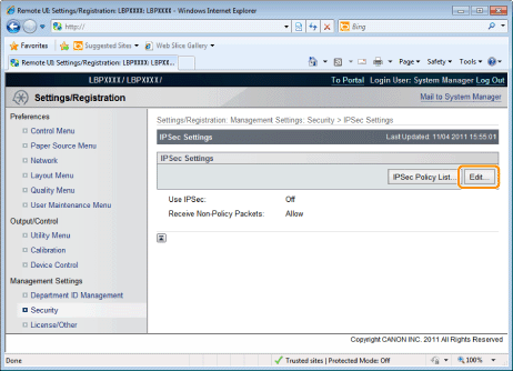 To perform a hard resetYou can perform a hard reset using the following procedure. 1. | Click [Settings/Registration]. | 2. | Select [Device Control] from the [Output/Control] menu. | 3. | Select [Hard Reset], and then click [Execute]. |