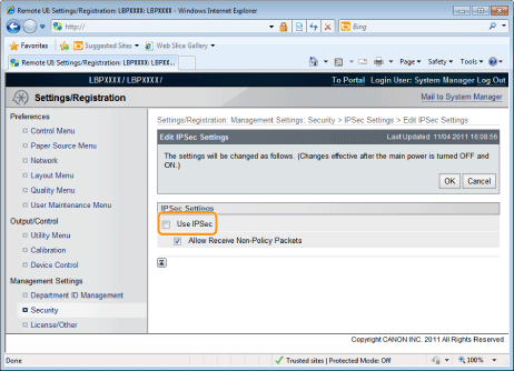 | In order to allow receipt of non-policy packets, select the [Allow Receive Non-Policy Packets] check box. |