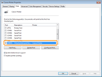 The port to be used cannot be found. | Install the printer driver again. For details on the procedure for installing and uninstalling the printer driver, see "Printer Driver Installation Guide." For details on the procedure for viewing "Printer Driver Installation Guide", see "Installation." |