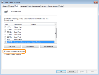 Not enabled | Enable bi-directional communication and restart the computer and printer. |
