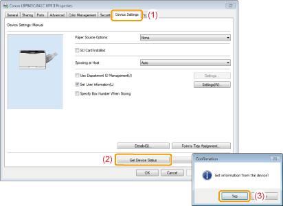 (3) | Click [Yes] to obtain the status of the paper feeder. |