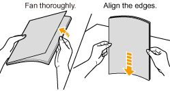 Fan the paper thoroughly, and then align the edges of the stack properly on a hard, flat surface.
