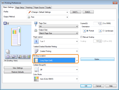 This function can also be set in the [Finishing] tab. The display may vary according to the operating system, as well as the type and version of the printer driver. |