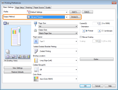For details on settings of Canon PageComposer, see the Canon PageComposer online help. The display may vary according to the operating system, as well as the type and version of the printer driver. |