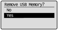When removing USB memory devicesAlways use the following procedure when removing USB memory devices. Using other methods to remove USB memory devices may result in damage to the device and the printer. |
