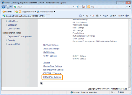 Before performing the setup, see "Attention (How to Specify the Settings for E-mail Print)." |