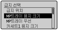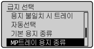 ]을 사용하여 등록할 종류의 급지 장치를 선택하고 [OK]를 누릅니다.![]() | 프린터 드라이버의 [용지 종류] 초기값이 [프린터 기본값]이므로, 보통 프린터 드라이버 설정을 변경할 필요는 없습니다. 프린터 드라이버 설정을 변경할 때마다 제어판의 용지 설정과 일치시킵니다. |