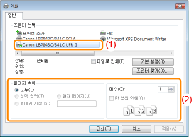 ![]() | 사용하는 응용 프로그램에 따라 인쇄 절차가 다를 수 있습니다. |