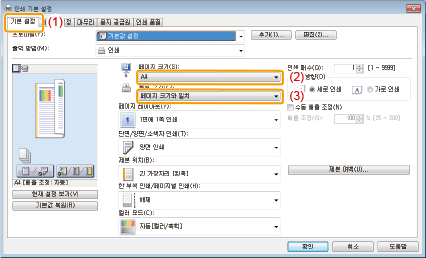 (3) | 인쇄할 용지의 크기가 데이터의 크기와 다른 경우에 선택합니다. |