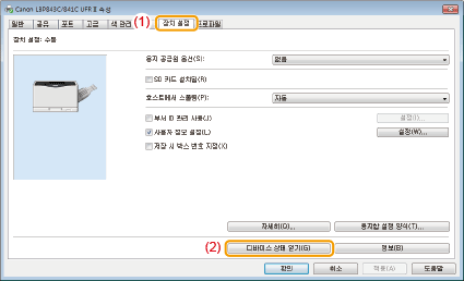 (1) | [디바이스 설정] 탭이 표시되게 합니다. |