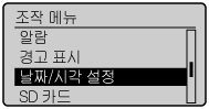 ]을 사용하여 [날짜/시각 설정]을 선택한 후 [OK]를 누릅니다.