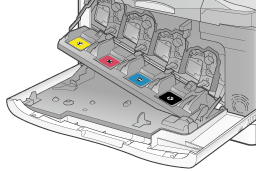 토너 카트리지 설치 시 주의사항프린터 내 토너 카트리지의 위치는 토너 색상에 따라 결정됩니다. 해당하는 색상 라벨이 있는 슬롯에 토너 카트리지를 설치합니다. ![]() |