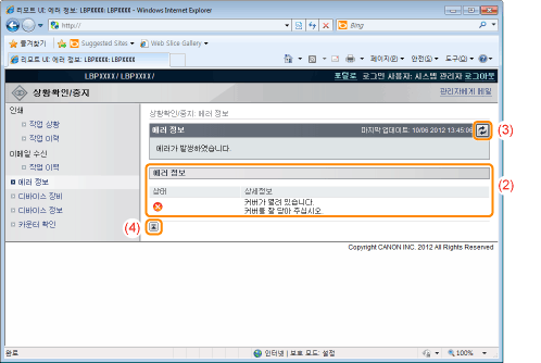 (3) | 업데이트 버튼최신 상태를 표시하도록 [에러 정보] 페이지를 새로고침합니다. |