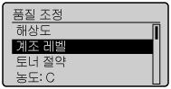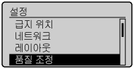 3 | 옵션을 선택합니다. [품질 조정] 옵션을 선택한 경우 ![]() | [ ] 또는 [ ]을 누릅니다. |