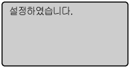 타겟 설정값이 지정됩니다. 설정 완료 화면이 3초간 표시됩니다. [설정] 메뉴에서 [설정완료 통지]를 사용해서 화면의 표시 시간을 변경할 수 있습니다. | ||