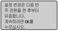 하드 리셋을 실행하거나 프린터를 재기동하고 나면 설정이 유효해집니다.