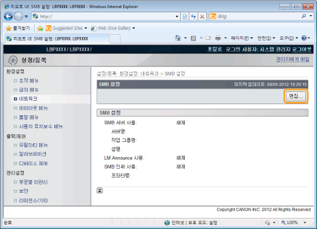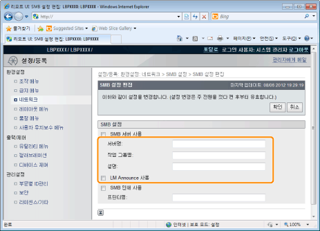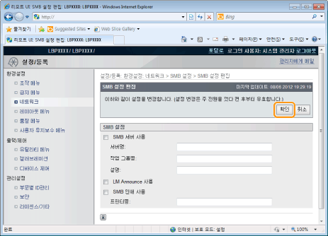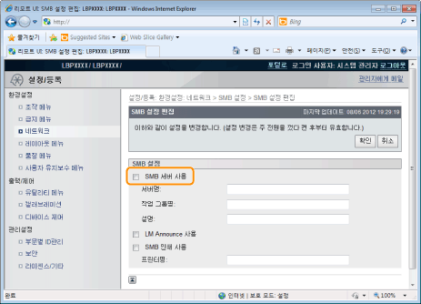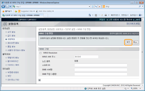 [SMB 서버명] | 절차 7에 설정된 WINS 서버명을 입력합니다. | ||||