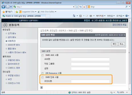 [SMB 서버 사용] 확인란을 해제한 경우SMB 네트워크에서 프린터가 인식되지 않습니다. |