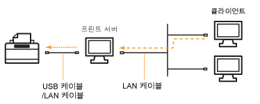 프린트 서버 환경에서 프린터를 사용하는 경우