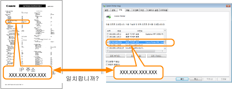 아니오, 일치하지 않습니다. | 프린터를 정적 IP 주소로 설정합니다. |