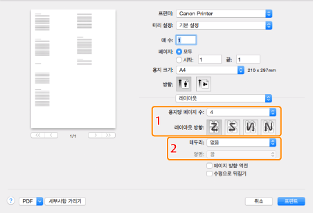 각 페이지에 테두리를 넣어 인쇄합니다.