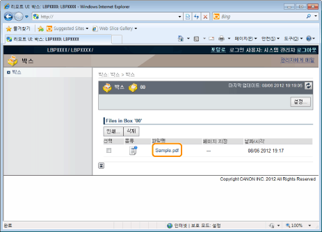 ![]() | 비밀번호가 상자에 지정되어 있다면, 비밀번호를 입력하고 [확인]을 클릭합니다. |
