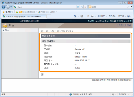 인쇄 부수 변경작업에 따라 인쇄 부수를 변경할 수 없습니다. 또한 XPS 형식으로 설정된 [인쇄 티켓 우선순위]를 지닌 저장된 작업의 인쇄를 변경하려는 시도는 무시됩니다. 문서명 표시하기최대 32자의 작업 파일명은 파일명으로 표시될 수 있습니다. 작업명이 32자가 넘으면 제한 숫자 이후의 문자는 표시되지 않습니다. 또한 애플리케이션에 따라 애플리케이션 이름이 파일명 앞 부분에 추가될 수 있습니다. 부서 ID 관리 관련 정보부서 ID 관리 기능이 활성화되면, [인쇄 시작]을 클릭하여 인증 대화상자를 표시합니다. 등록된 부서 ID와 비밀 번호를 [사용자명] 및 [비밀번호]에 입력하여 인쇄를 시작할 수 있습니다. 로그인하기로 지정된 것과 다른 부서 구성원으로서 인쇄를 수행하고자 하면 일단 로그아웃하고 다시 로그인하여 리모트 UI를 재차 시작합니다. |