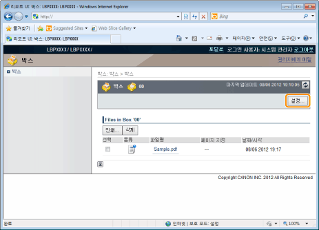 확인하거나 실행하고자 하는 작업이 저장되는 상자의 상자 번호를 입력하고 [열기]를 클릭합니다.