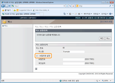 | 비밀번호가 상자에 지정되어 있다면, 비밀번호를 입력하고 [확인]을 클릭합니다. |