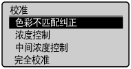 ] 从 [色彩不匹配纠正]、[浓度控制]、[中间浓度控制] 和 [完全校准] 中选择要调整的项目,然后按下 [OK]。