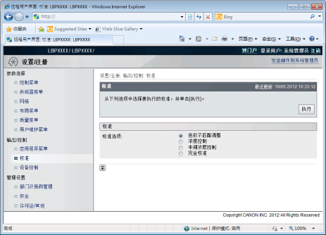 (1) | [调整打印位置/其他]显示各纸张来源的打印位置调整设置。如果出现问题,还显示操作和维护设置。 |