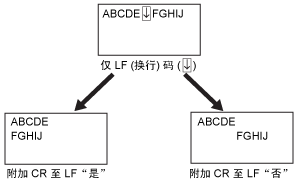 [附加CR至LF] | [是]、[否] | 利用该选项可指定是否在收到换行码 (LF) 后附加回车 (CR)。 ![]() |