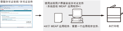 使用从许可证管理系统获取的许可证文件/许可证密钥,可安装系统选项/MEAP 应用程序。