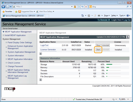要使用 MEAP 应用程序要使用所安装的 MEAP 应用程序,必须启动 MEAP 应用程序。 |