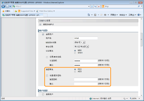 (1) | 指定 SNMP v. 3 协议中要使用的用户信息。 如果要注册/编辑用户信息