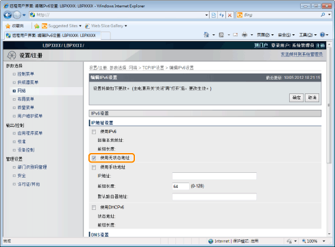 无状态地址保留选中 [使用无状态地址] 复选框后,打印机重新启动,自动显示无状态地址。打印机关闭时丢弃无状态地址。 |