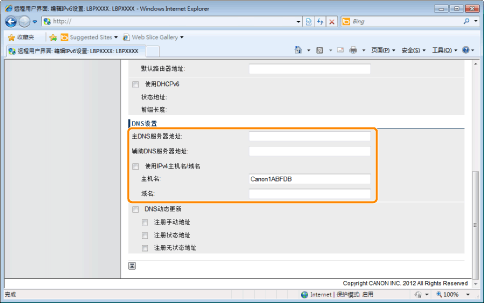 (1) | 在 [主DNS服务器地址] 中输入主 DNS 服务器的 IP 地址。 |