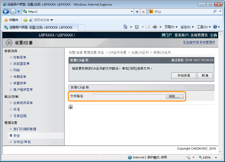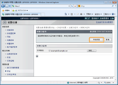 在打印机上安装 CA 证书文件