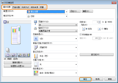[基本设置] 选项卡包含从所有驱动程序设置中收集的基本设置。在 [基本设置] 选项卡中可指定的设置也可在其他选项卡中进行指定。 |