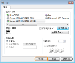 从 Windows 应用商店应用程序或 Windows 应用程序发送Windows 10 在应用程序菜单中选择 [打印] Windows 8/Server 2012 在屏幕右侧显示超级按钮 → [设备] → 选择所使用的打印机 → 单击 [打印] Windows 8.1/Server 2012 R2 在屏幕右侧显示超级按钮 → [设备] → [打印] → 选择所使用的打印机 → 单击 [打印] 通过上述步骤打印时,仅可指定部分打印功能。 |