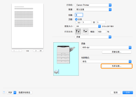 如果显示器上显示的颜色与打印效果存在差异,打印色彩未达到预期等,可指定匹配方法以调整色彩。