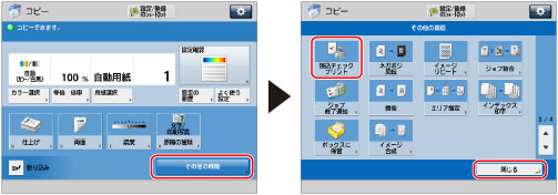 [その他の機能]→[読込チェックプリント]→[閉じる]を押す