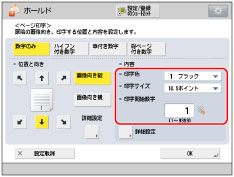 設定できる桁数は、2~5桁までです。 例) ページ番号が10番目で、桁数が2桁の場合: 10 → 10 ページ番号が10番目で、桁数が5桁の場合: 10 → 00010 指定した桁数が、印字する数字の桁数より小さい場合は設定が無効となります。 |