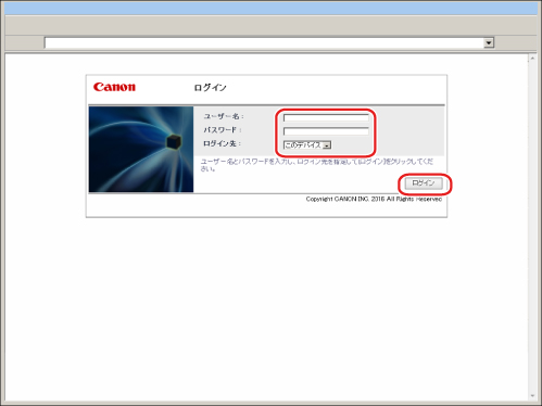 ユーザー名、パスワードを入力→ログイン先を選択→[ログイン]をクリック