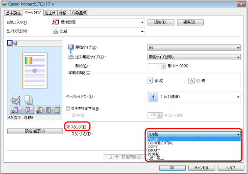 スタンプは、あらかじめ登録されているスタンプを除き最大50個まで追加登録できます。 お使いのOS、プリンタードライバーの種類およびバージョンによって画面が異なることがあります。 |