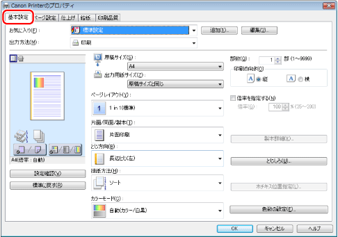 この機能は、[印刷品質]タブでも設定できます。 お使いのOS、プリンタードライバーの種類およびバージョンによって画面が異なることがあります。 |