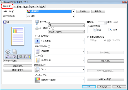 お使いのOS、プリンタードライバーの種類およびバージョンによって画面が異なることがあります。