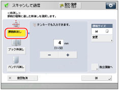 セットした原稿のサイズを指定するときは、[変更]を押して原稿のサイズを選択したあと、[OK]を押します。