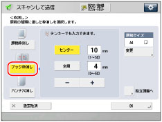 原稿を読み込んだときにできる周囲の影や枠線などを消して読み込みます。枠消しには、[原稿枠消し]、[ブック枠消し]、[パンチ穴消し]の3種類があります。